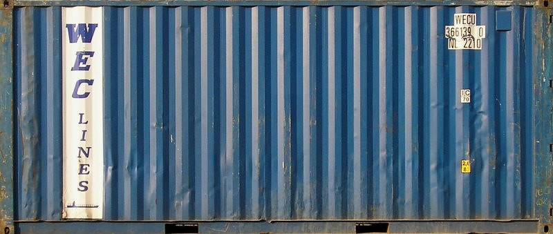 This page contains various photos of 20, 40, and 45 foot intermodal containers. The remarkable aspect of these photos is that they are (or were adjusted to be) perfectly square to the camera, making them ideal for printing and applying to model containers. This page has only a small number of the images from a now-defunct commercial site, which I saved while making my own container models. You should find more than enough here for a generous assortment of containers.How to use: Click on the thumbnail below for any desired image. A new window will open with the selected image. Keep both windows open - as you select from this page, the other window will update with the selected image. From that window, you can save the image to your computer. Either right-click on the image to reveal a contextual menu, or use your browser's FILE/SAVE menu selection. Once you have the ones you want, use a drawing program to paste them into one document as desired.